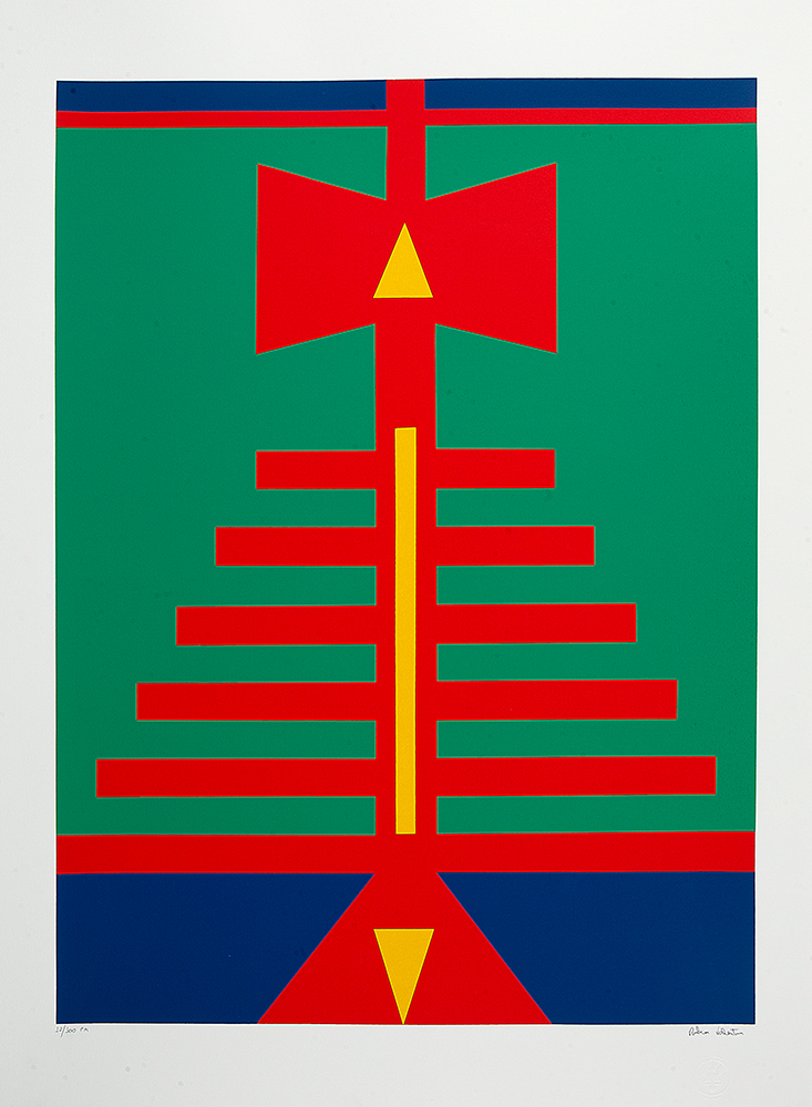Sem TítuloSerigrafia, 100 x 70 cm, ass. inferior direito, tiragem 12/100. Com carimbo do Instituto Cultural Rubem Valentim. Edição Póstuma